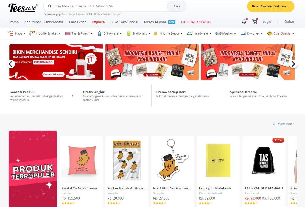 - More than 30 product categories available, with popular choices includes T-shirt, Hoodie, E-Money and Notebook.